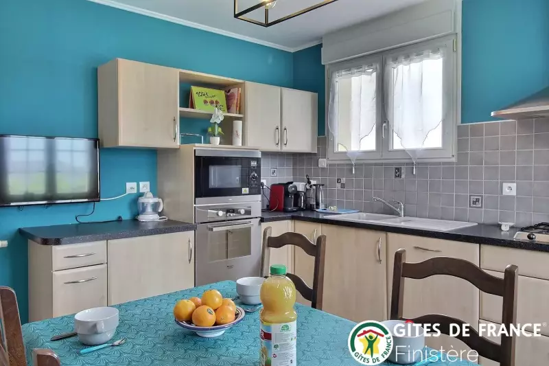 A Landéda, proche de l’Aber Wrach, à 1km des plages : rénovation 2023: maison à étage sur cave, indépendante, lumineuse , confortable pour 8 personnes + 1 bébé comprenant au RDC : une cuisine équipée, d’un salon-séjour, WC indépendants, salle d’eau et une chambre double.