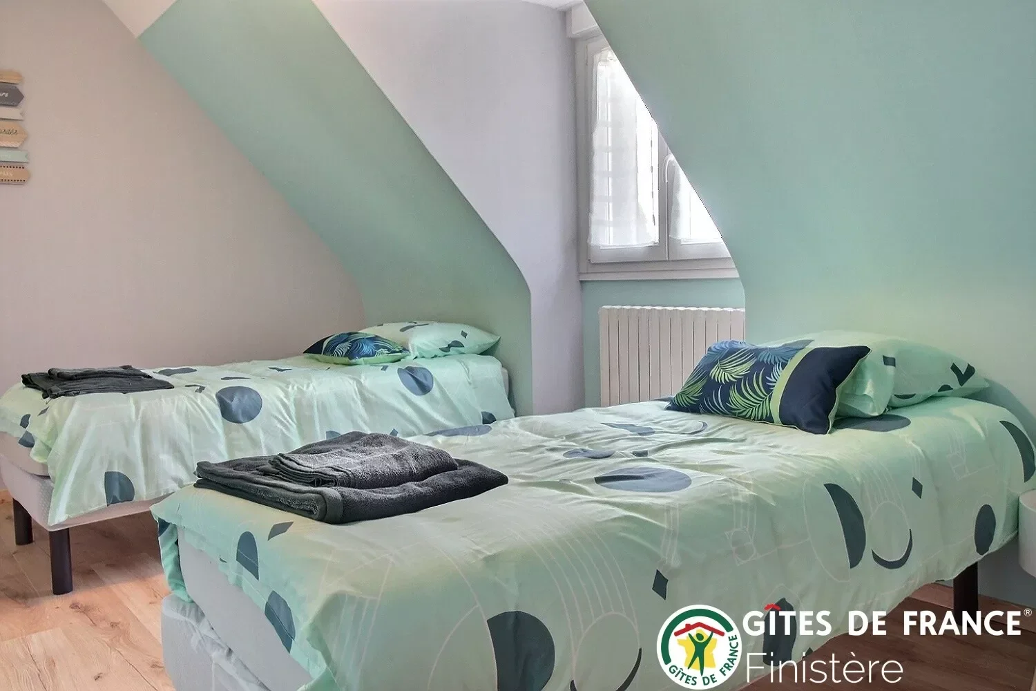 A l’étage:3 chambres (1 chambre avec 2 lits simples , 1 chambre double et 1 chambre parentale avec le matériel bébé), WC indépendants et 1 salle de bain.